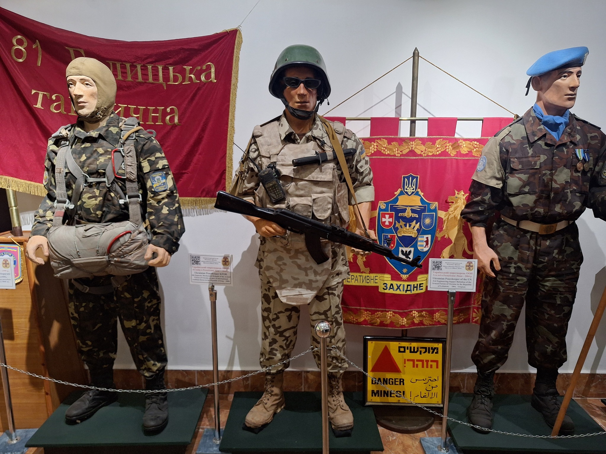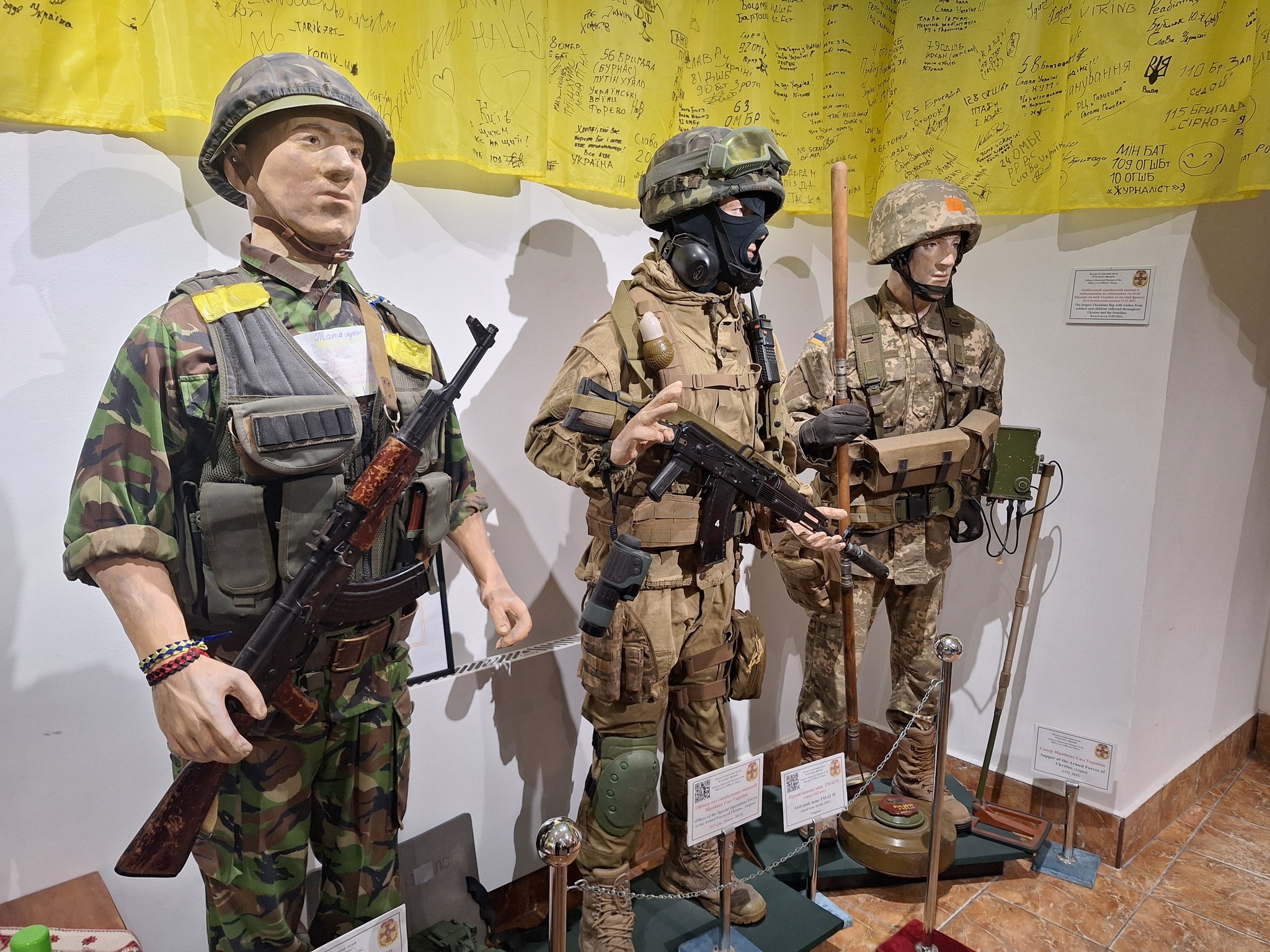 Музейна виставка охоплює чотири тематичні зали: фрагменти озброєння та техніки, що залишилися після обстрілів і атак рф проти України, військовий одяг і спорядження різних епох, документальні свідчення сучасної російсько-української війни та особисті речі загиблих українських захисників, кожна з яких має свою трагічну й водночас героїчну історію.