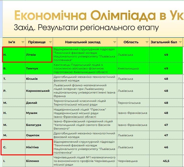 Особливо приємно відзначити, що Назар ЛІТВІН (група 11 МК) та Софія НІКІТІНА (група 21 ПТ) увійшли до числа найкращих учасників і вибороли право представляти коледж на Національному (фінальному) етапі Олімпіади. До фіналу від регіону проходять лише 10 учасників, що робить цей результат особливо престижним.